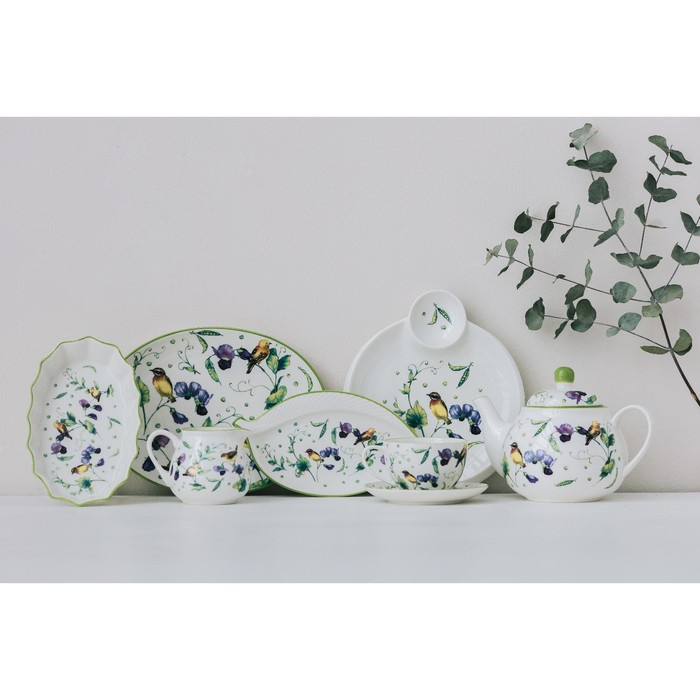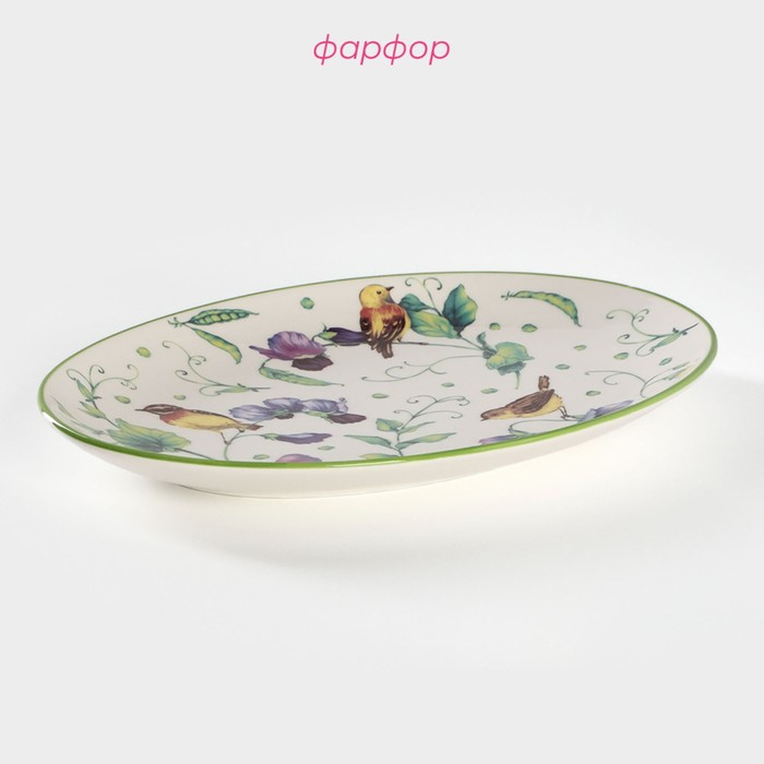 Блюдо фарфоровое для подачи Доляна «Зелёный сад», 25×18,5 см, цвет белый