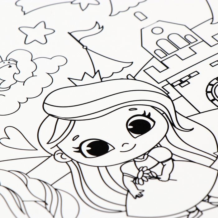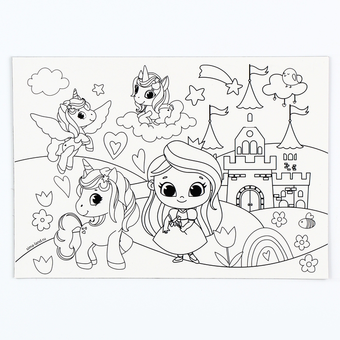 Магнит-раскраска многоразовая «Принцесса и сказочные Единорожки», 14,8 × 21 см