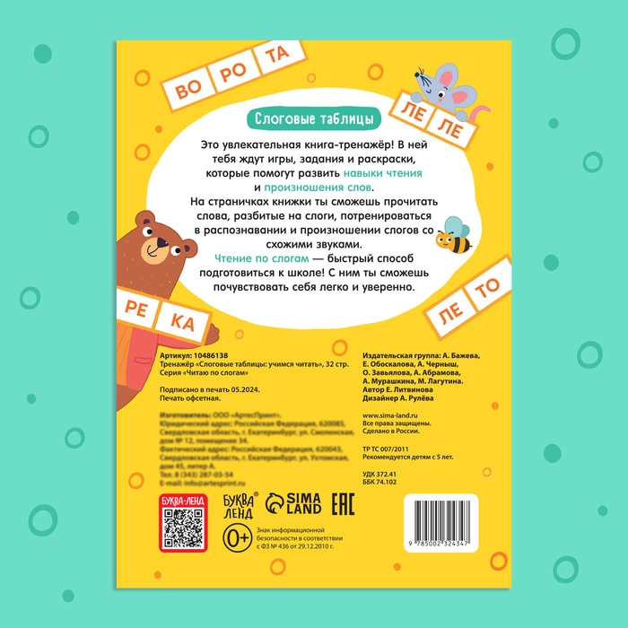 Тренажёр «Слоговые таблицы: учимся читать», 32 стр.