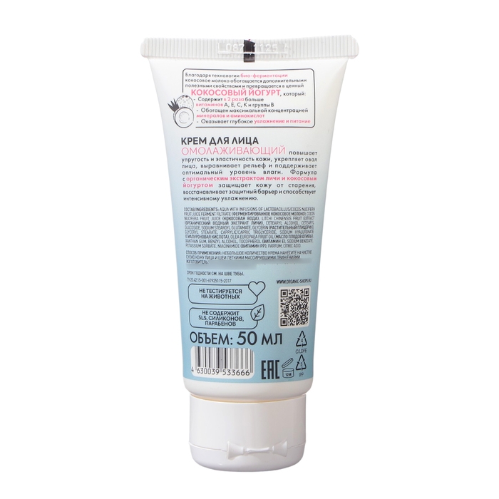 Формула с органическим экстрактом личи и кокосовым йогуртом защищает кожу от старения, восстанавливает защитный барьер и способствует интенсивному увлажнению.