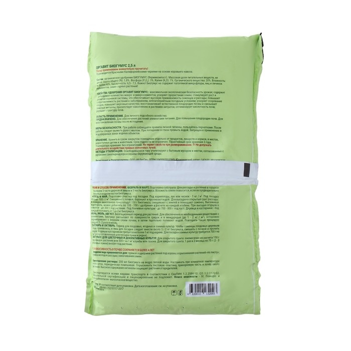 "Оргавит Биогумус" поставляется в удобной упаковке объемом 2,5 литра, что позволяет использовать его на больших площадях. Удобная упаковка обеспечивает удобство хранения и применения удобрения.