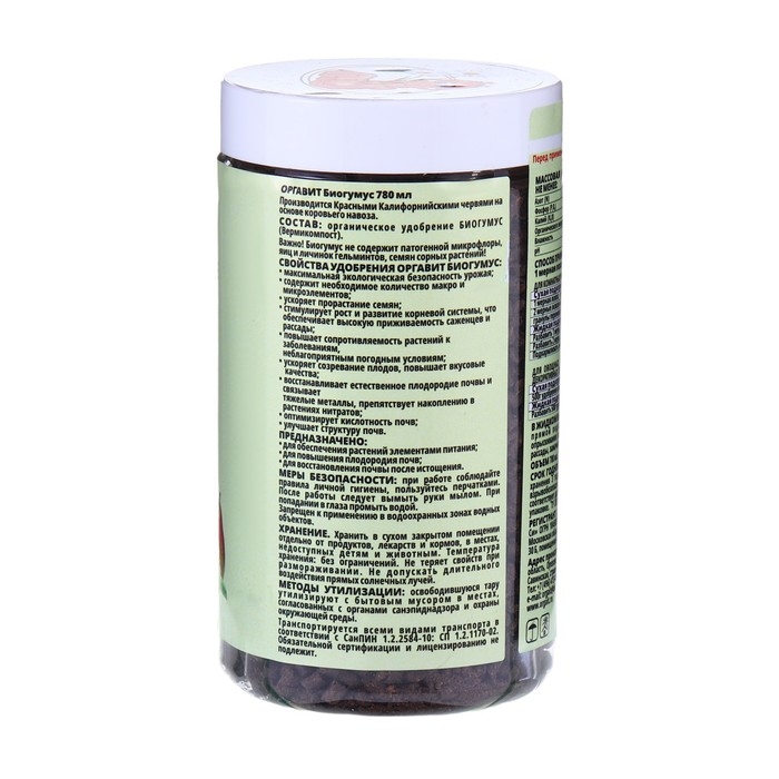 Удобрение гранулированное органическое Оргавит Биогумус, 780 мл