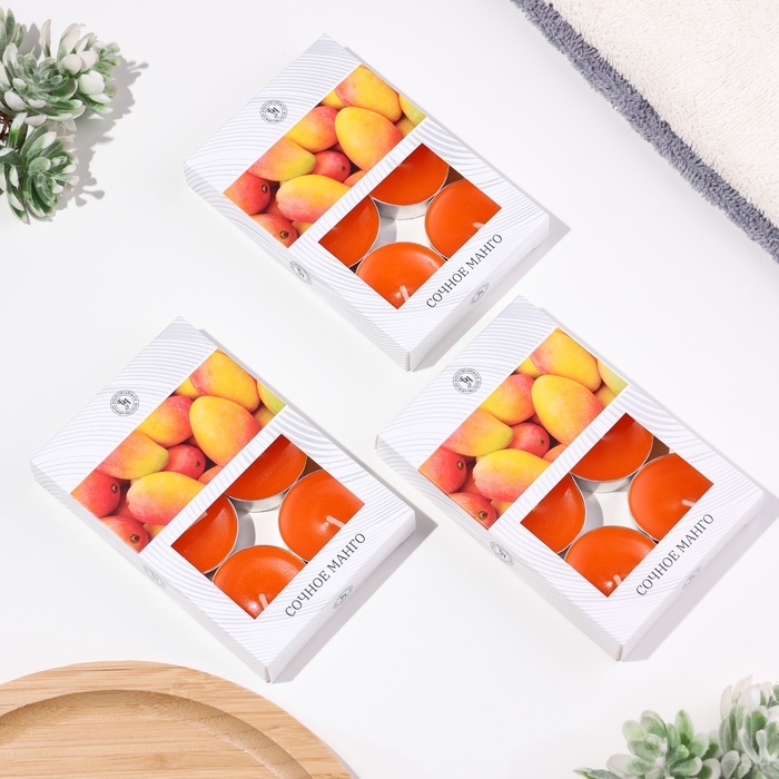 Свечи чайные ароматизированные "Сочное манго" в подарочных коробках, 18 шт
