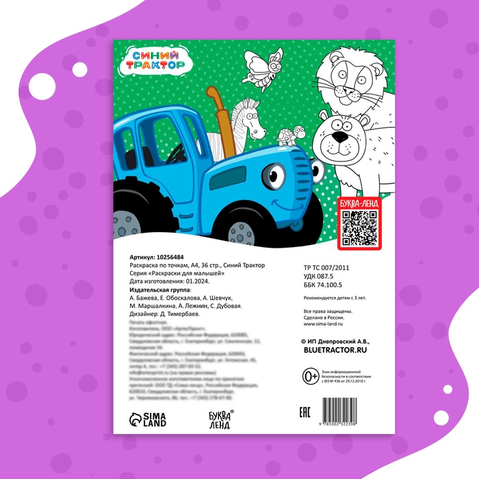 Раскраска по точкам «Синий трактор», А4, 36 стр.