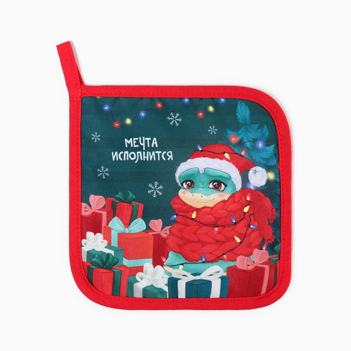 Новый год. Символ года. Змея. Прихватка Доляна "Мечта исполнится" 17х17 см, 35% хл, 65% пэ, ватин 250 г/м2