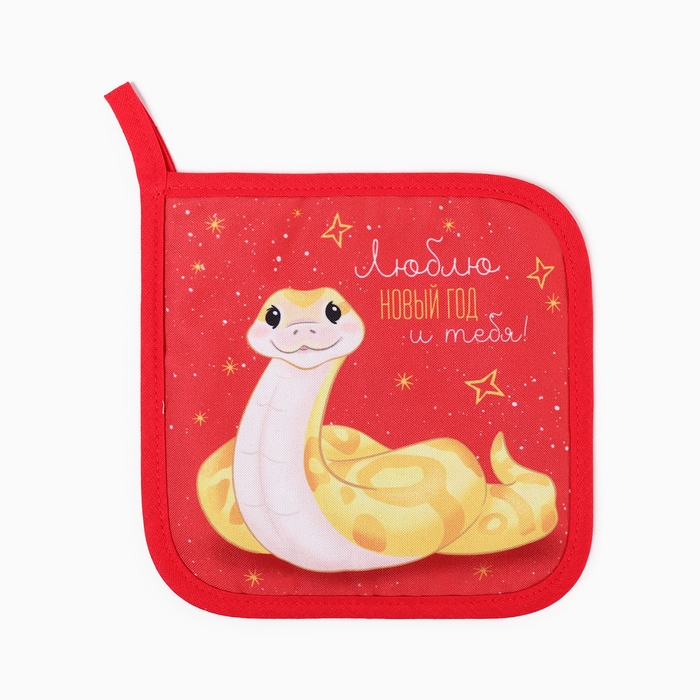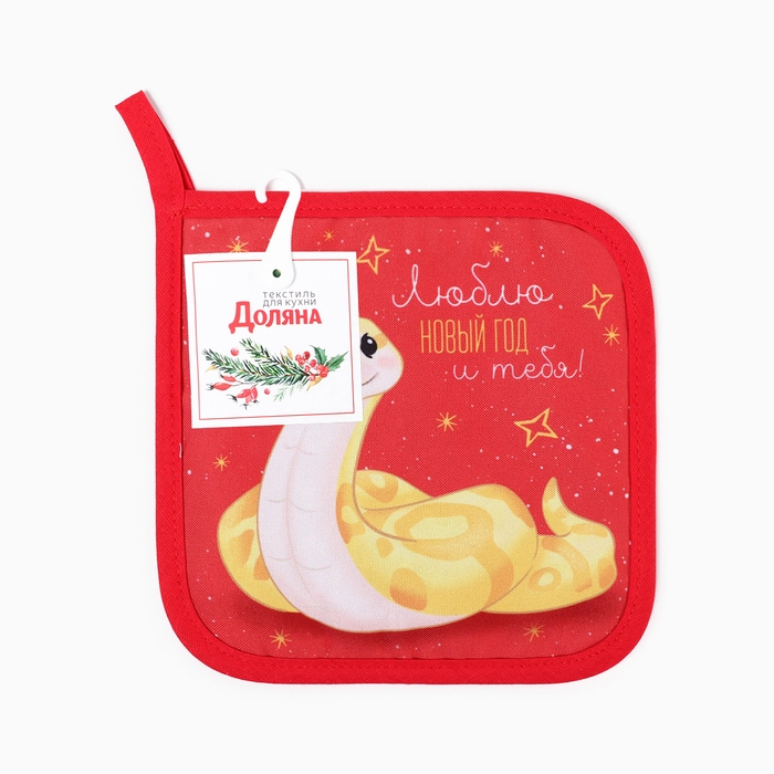 Новый год. Символ года. Змея. Прихватка Доляна "Люблю Новый год" 17х17 см, 35% хл, 65% пэ, ватин 250 г/м2