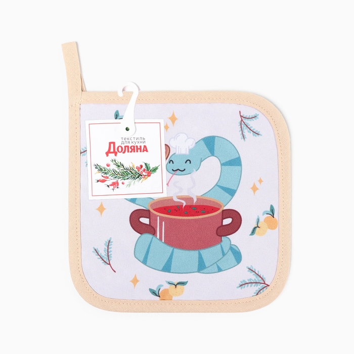 Новый год. Символ года. Змея. Прихватка Доляна "Вкусного года" 17х17 см, 35% хл, 65% пэ, ватин 250 г/м2