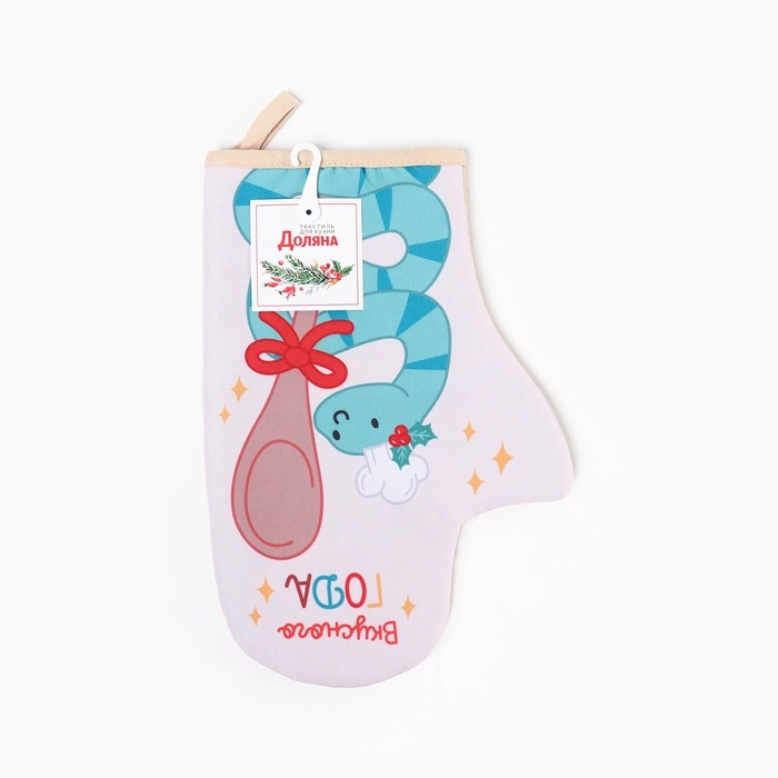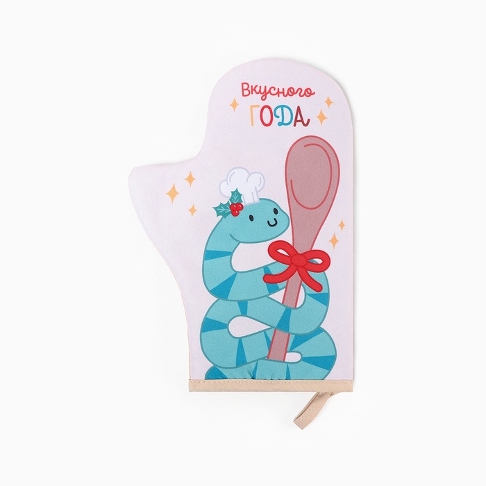 Новый год. Символ года 2025. Змея. Варежка-прихватка Доляна "Вкусного года" 20х28 см, 35% хл, 65% пэ, ватин 250 г/м2