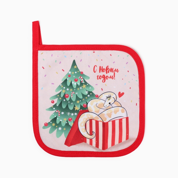 Новый год. Символ года. Змея. Прихватка Доляна "Семейный праздник" 17х17 см, 35% хл, 65% пэ, ватин 250 г/м2