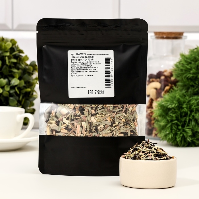 Состав: чёрный индийский чай, лимонная трава, имбирь, медовые гранулы.