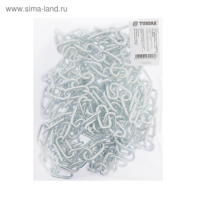 Цепь короткозвенная ТУНДРА krep, DIN766, диаметр 4 мм, сварная, оцинкованная, 5 м