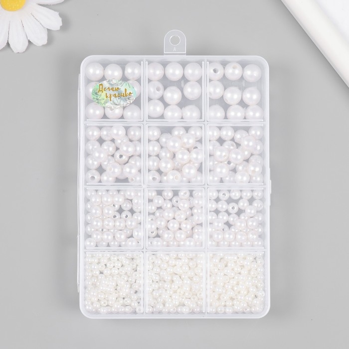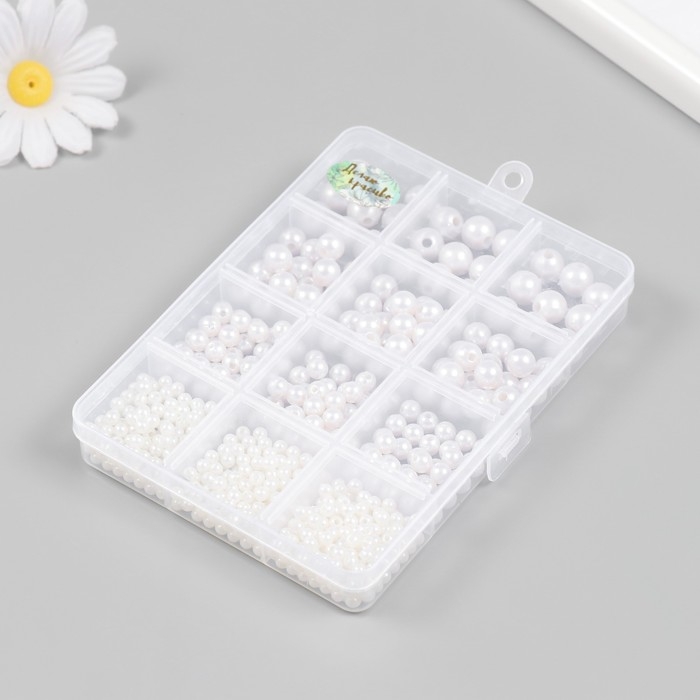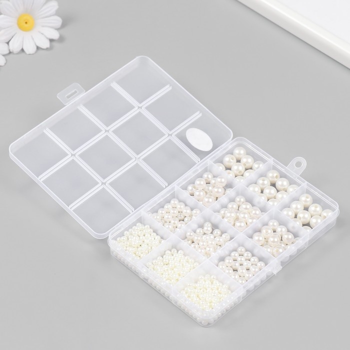 Бусины в шкатулке "Жемчужные" 12 делений 10х13,5х1,8 см