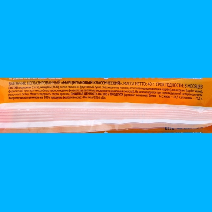 Батончик неглазированный марципановый, классический, 40 г
