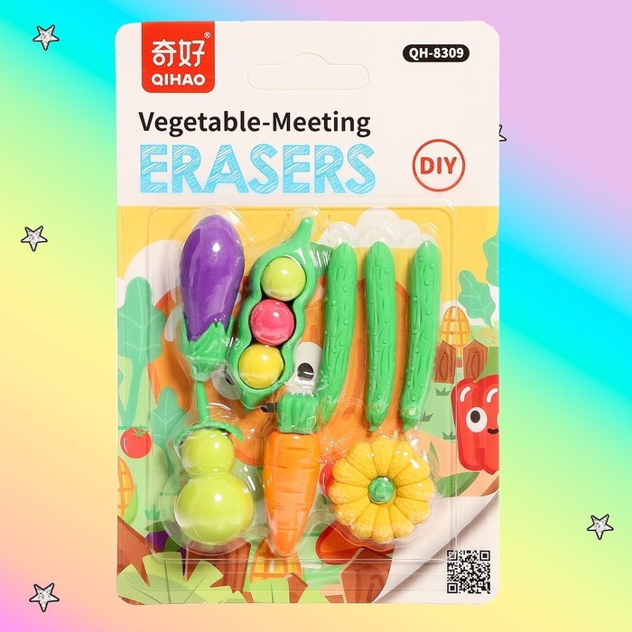 - Ластики в виде овощей легко справляются с удалением карандашных линий