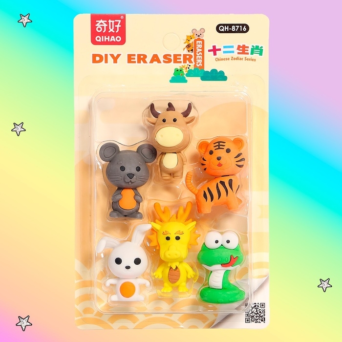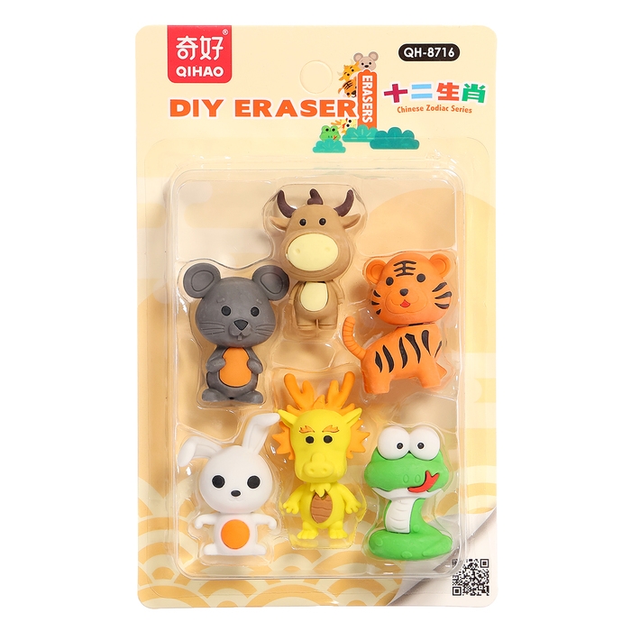 Игровой набор ластиков «Зверята», 6 шт., МИКС
