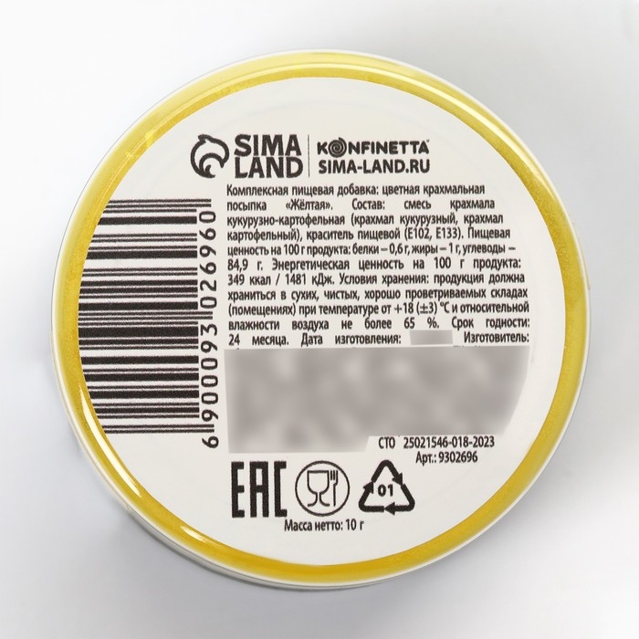 Краситель-пыльца «Жёлтый» для капкейков, тортов и леденцов, 10 г.