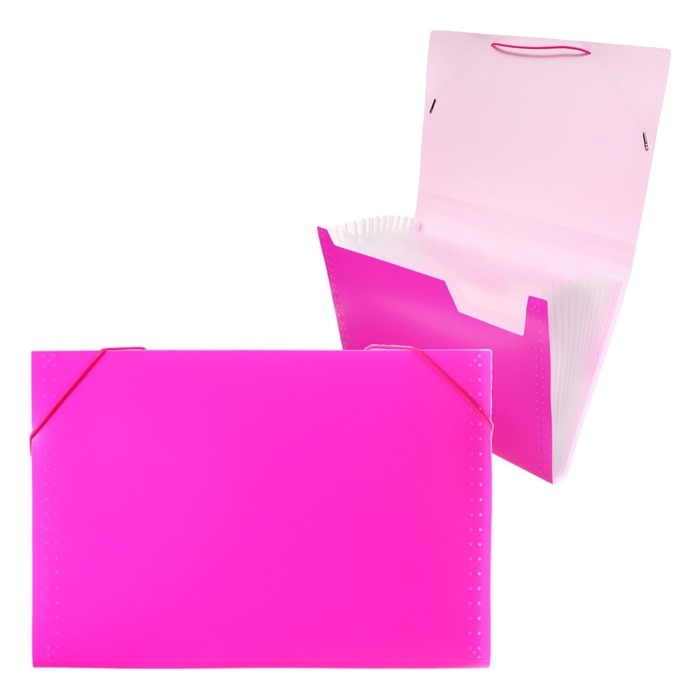 Папка картотека А4, Calligrata "Неон", 6 отделений, пластиковая, 700 мкм, фуксия, резинка в цвет