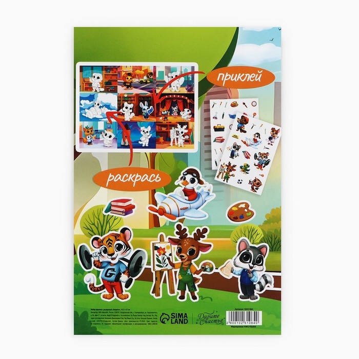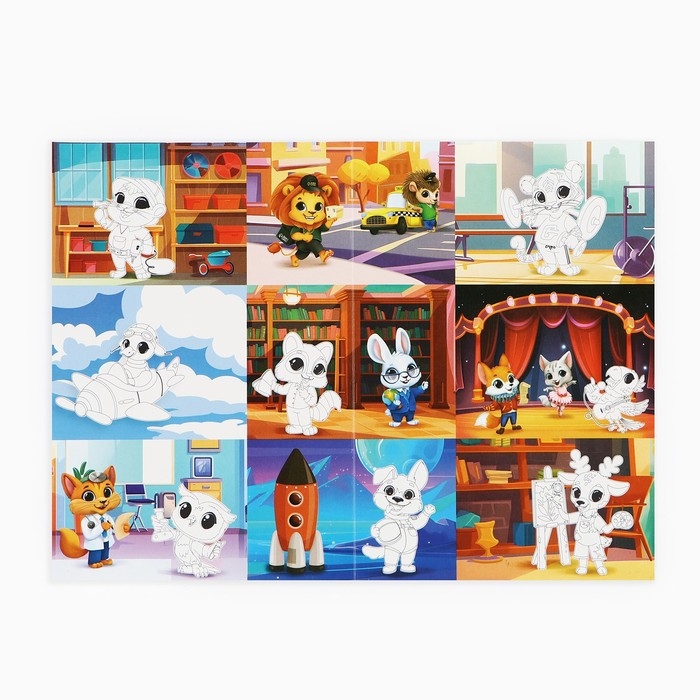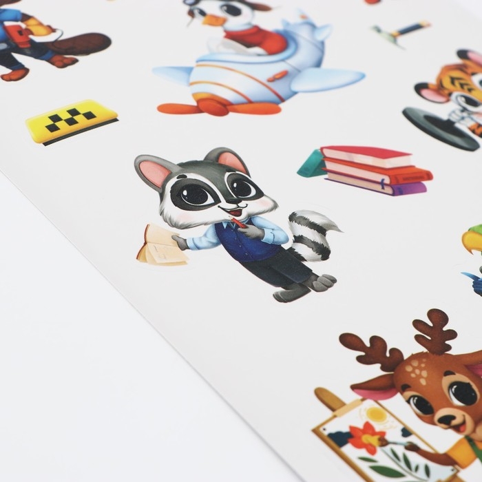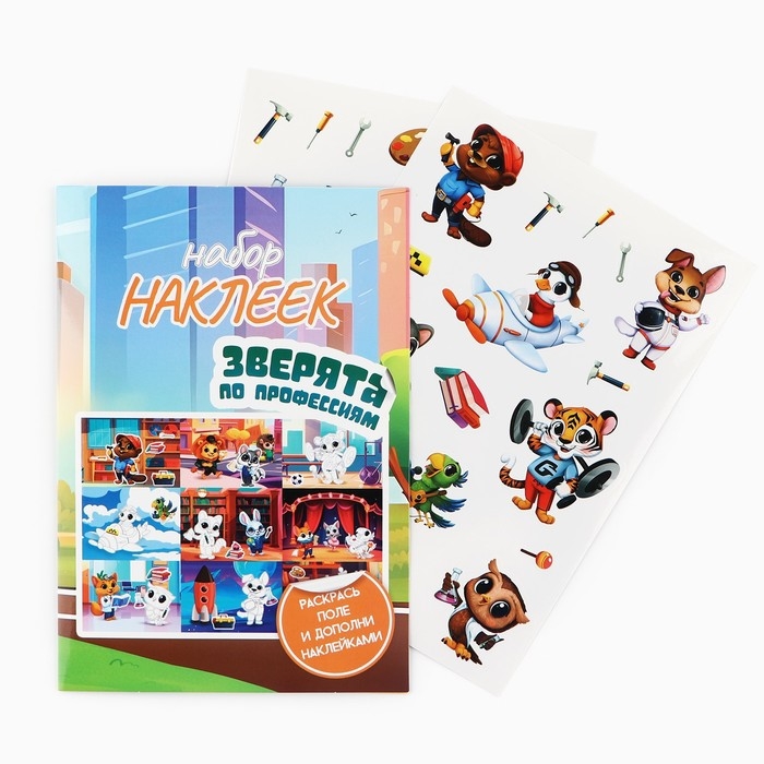 Наклейки детские c раскраской «Зверята по профессиям», 45 шт, 14.5 х 21 см