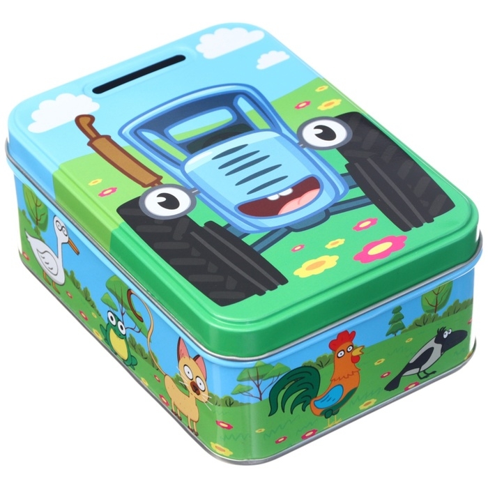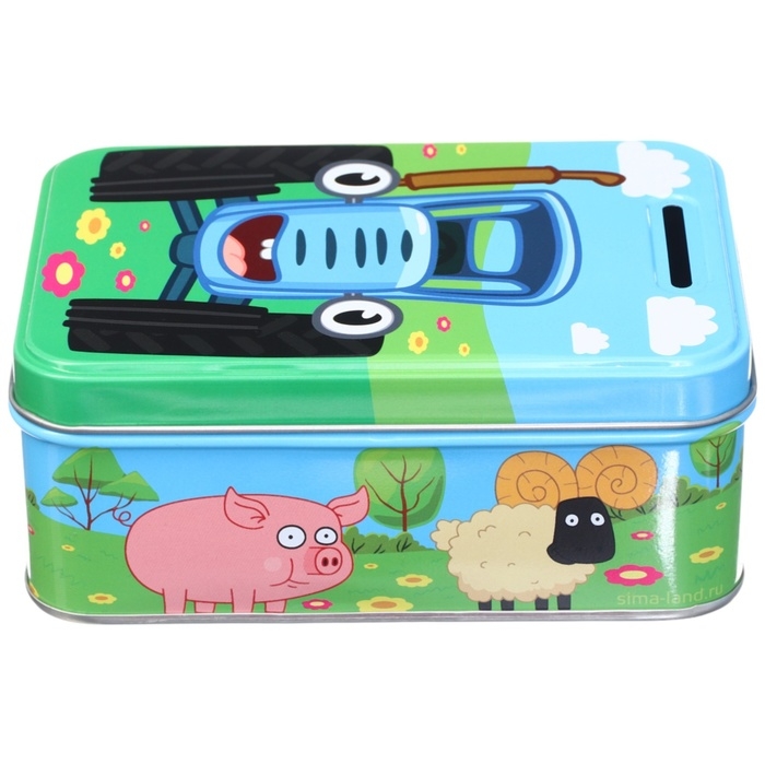 Копилка 14х10х5.8 см, металл, Синий трактор