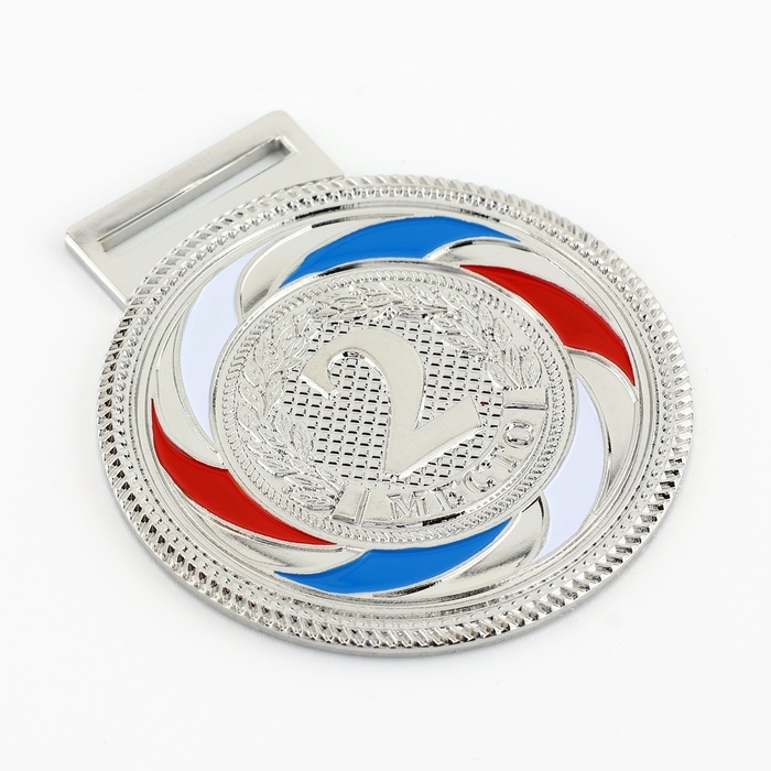 Медаль призовая 071, 2 место. Цвет серебро. С лентой. 4,3 х 4,6 см