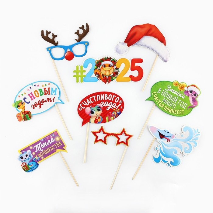 Набор для фотосесии новогодний «С Новым годом», на Новый год, 9 предметов, 20 х 30 см