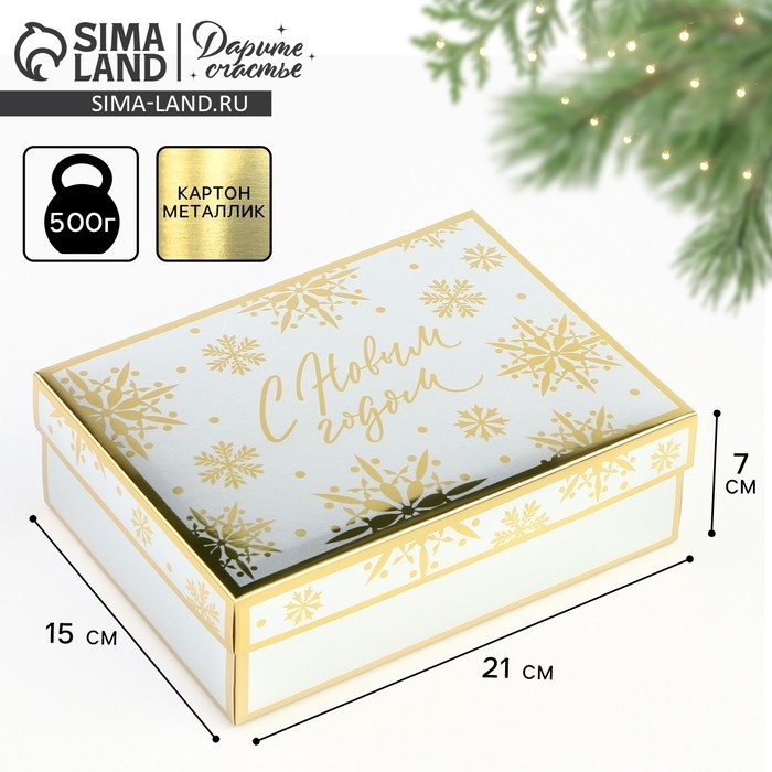 Коробка подарочная новогодняя складная «Снежинки», 21 х 15 х 7 см, Новый год