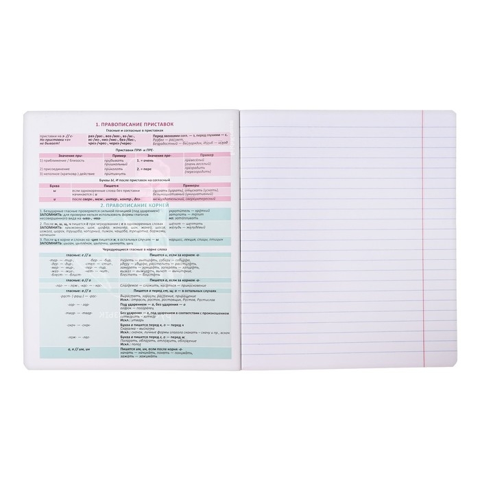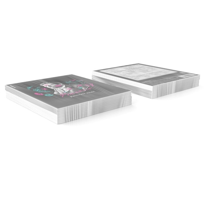 Тетрадь предметная формата А5+ (170x203 мм). Двойная обложка: внешняя выполнена из высококачественного износостойкого прозрачного пластика с фактурой «песок», внутренняя — из качественной мелованной бумаги. В блоке 48 листов в линейку с полями. Бумага офсетная плотностью 60 г/м2. Белизна бумаги - 100%. Цвет линовки - синий. Скругленные уголки обложки и блока. Тип скрепления - скоба. Имеет инфо-блок с кратким изложением школьной программы. Тетради упакованы в термоусадочную плёнку по 5 штук.