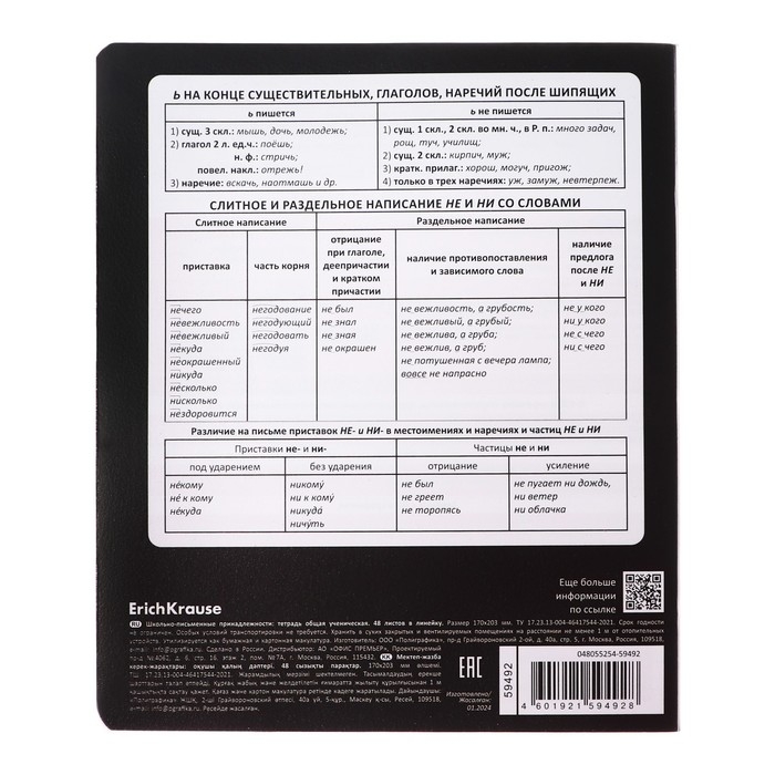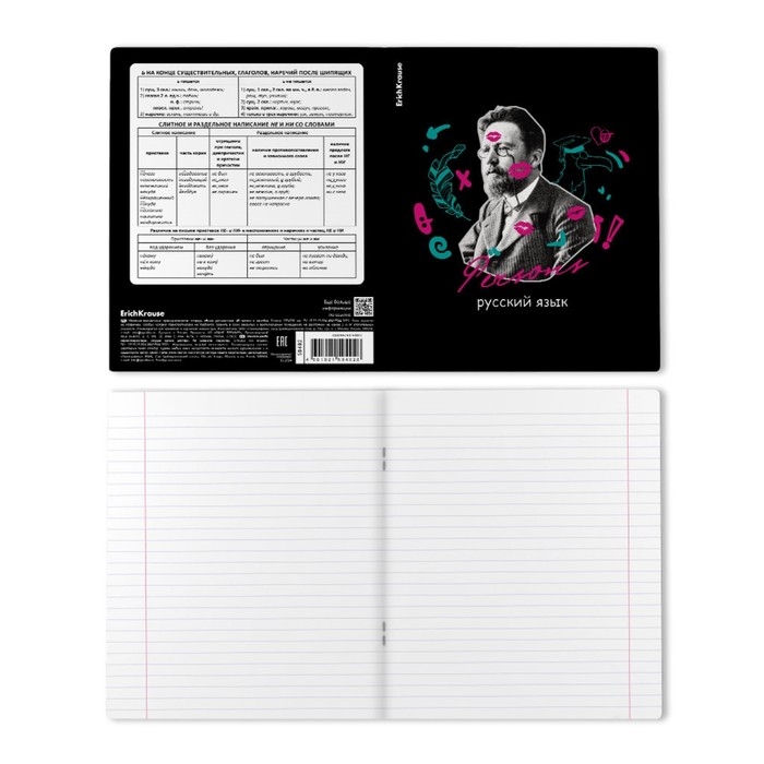 Тетрадь предметная РУССКИЙ ЯЗЫК, 48 листов в линейку, ErichKrause Persons, пластиковая обложка, шелкография, блок офсет 100% белизна, инфо-блок