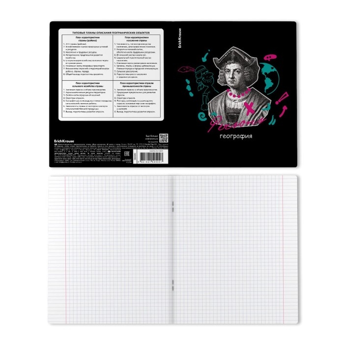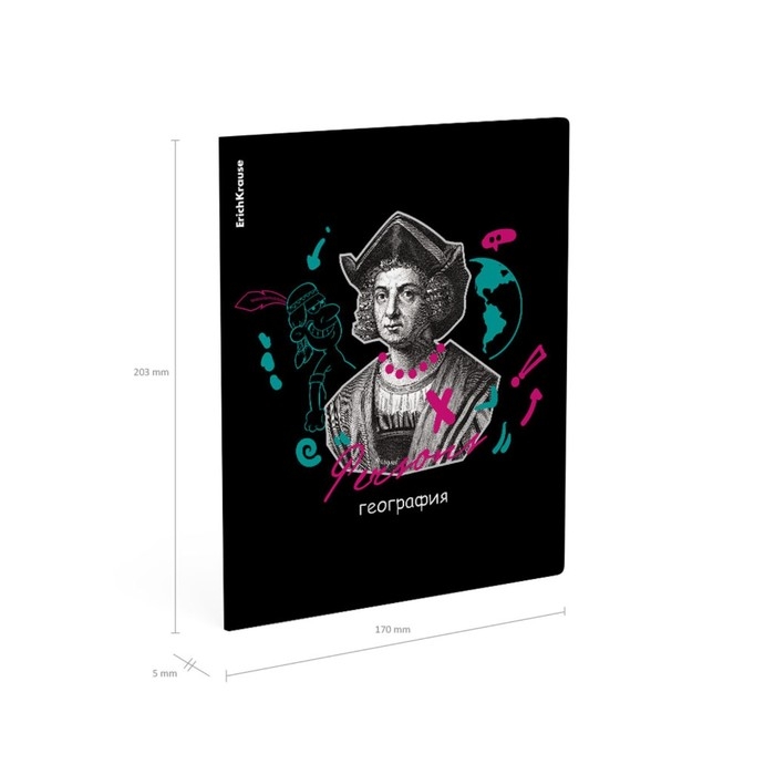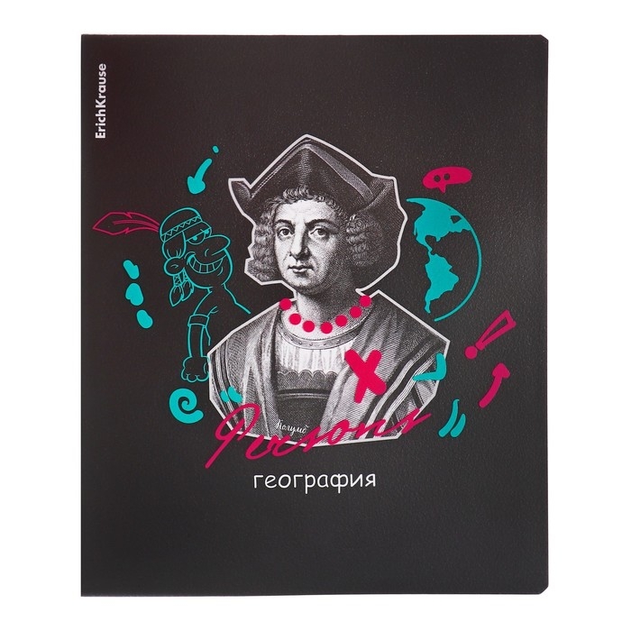 Тетрадь предметная ГЕОГРАФИЯ, 48 листов в клетку, ErichKrause Persons, пластиковая обложка, шелкография, блок офсет 100% белизна, инфо-блок