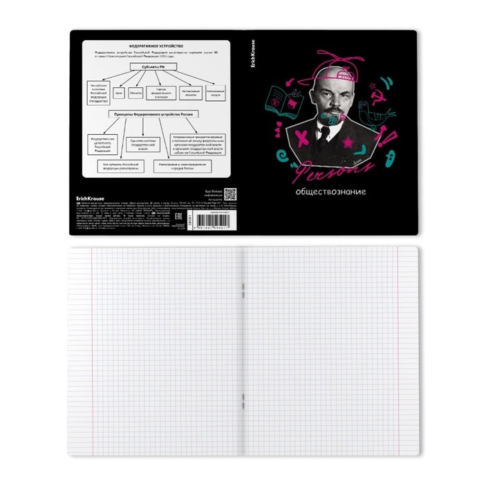 Тетрадь предметная ОБЩЕСТВОЗНАНИЕ, 48 листов в клетку, ErichKrause Persons, пластиковая обложка, шелкография, блок офсет 100% белизна, инфо-блок