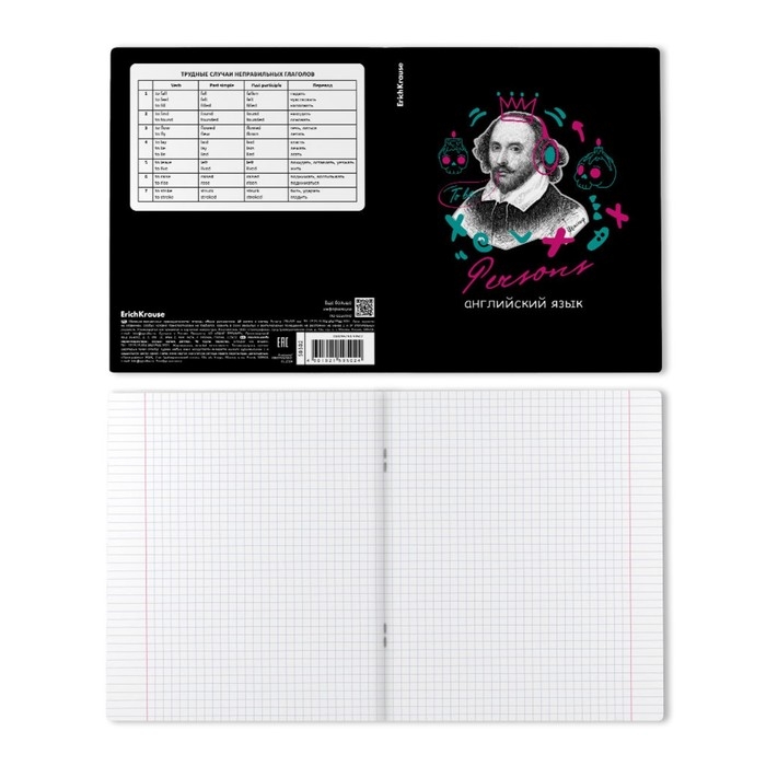 Тетрадь предметная АНГЛИЙСКИЙ ЯЗЫК, 48 листов в клетку, ErichKrause Persons, пластиковая обложка, шелкография, блок офсет 100% белизна, инфо-блок