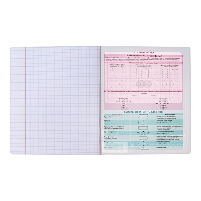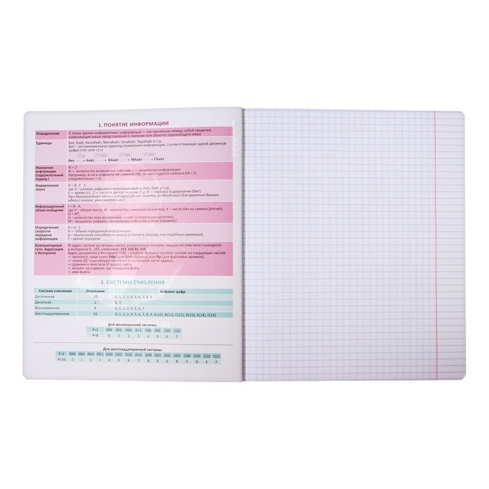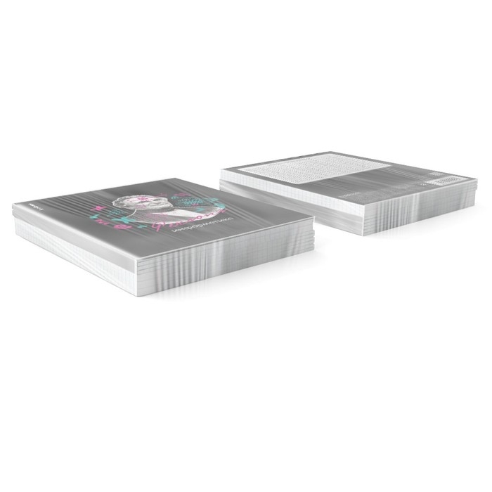 Тетрадь предметная формата А5+ (170x203 мм). Двойная обложка: внешняя выполнена из высококачественного износостойкого прозрачного пластика с фактурой «песок», внутренняя — из качественной мелованной бумаги. В блоке 48 листов в клетку с полями. Бумага офсетная плотностью 60 г/м2. Белизна бумаги - 100%. Цвет линовки - синий. Скругленные уголки обложки и блока. Тип скрепления - скоба. Имеет инфо-блок с кратким изложением школьной программы. Тетради упакованы в термоусадочную плёнку по 5 штук.