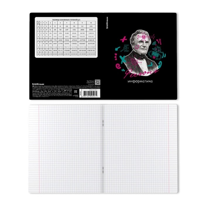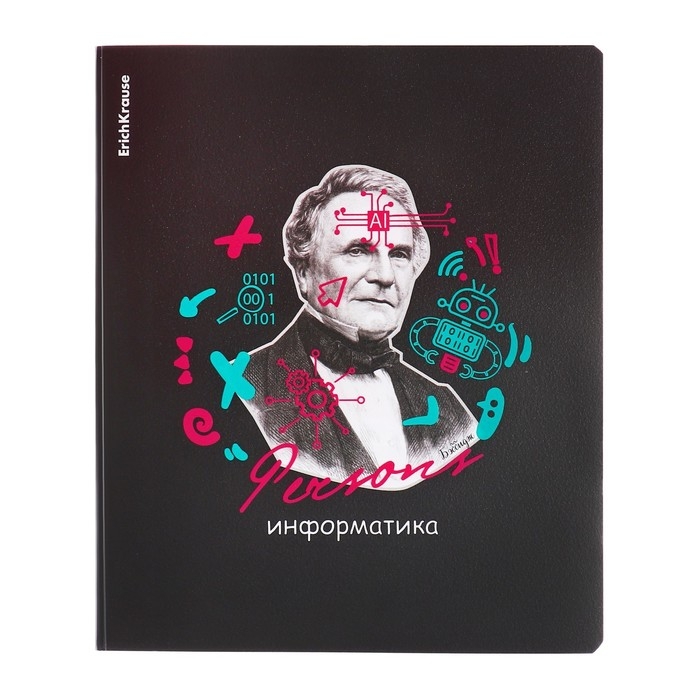 Тетрадь предметная ИНФОРМАТИКА, 48 листов в клетку, ErichKrause Persons, пластиковая обложка, шелкография, блок офсет 100% белизна, инфо-блок