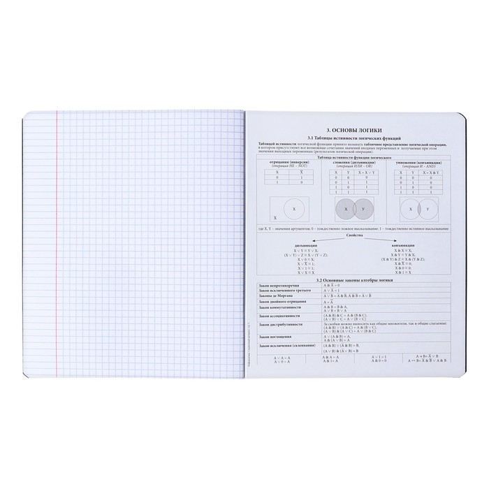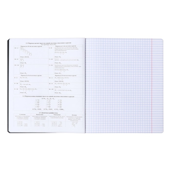 Тетрадь предметная формата А5+ (170x203 мм). Двойная обложка: внешняя выполнена из высококачественного износостойкого черного пластика с фактурой «песок», внутренняя — из качественной мелованной бумаги. В блоке 48 листов в клетку с полями. Бумага офсетная плотностью 60 г/м2. Белизна бумаги - 100%. Цвет линовки - синий. Скругленные уголки обложки и блока. Тип скрепления - скоба. Имеет инфо-блок с кратким изложением школьной программы. Тетради упакованы в термоусадочную плёнку по 5 штук.