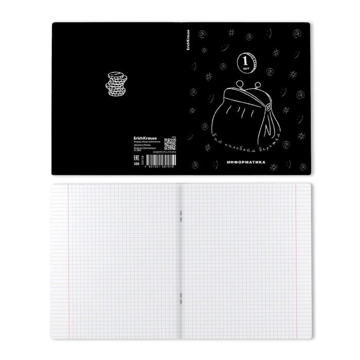 Тетрадь предметная ИНФОРМАТИКА, 48 листов в клетку, ErichKrause "Зри в корень", пластиковая обложка, шелкография, блок офсет 100% белизна, инфо-блок