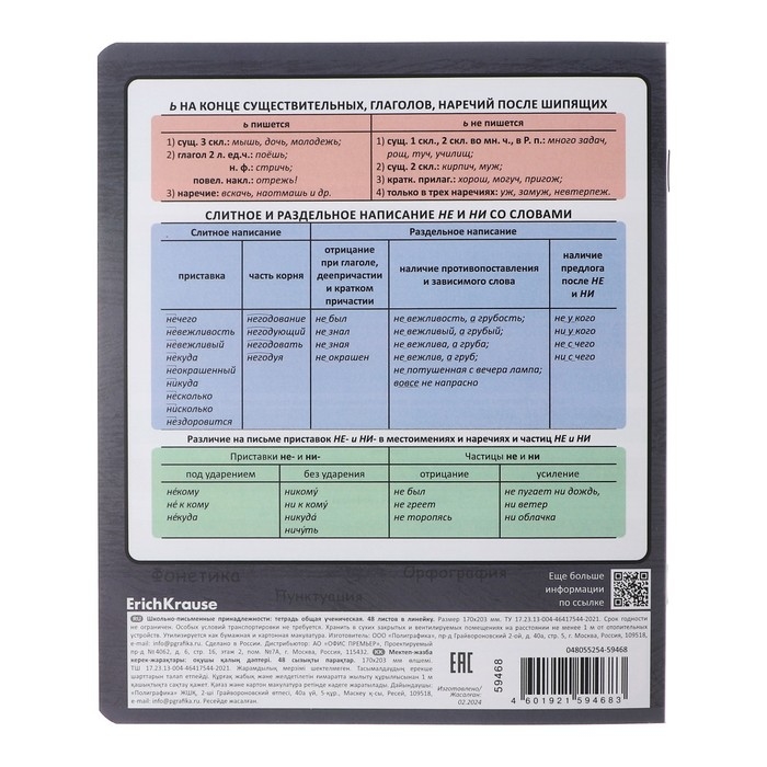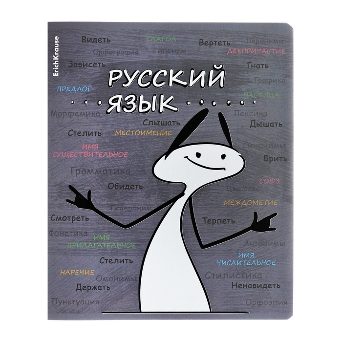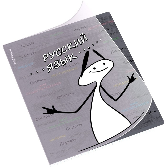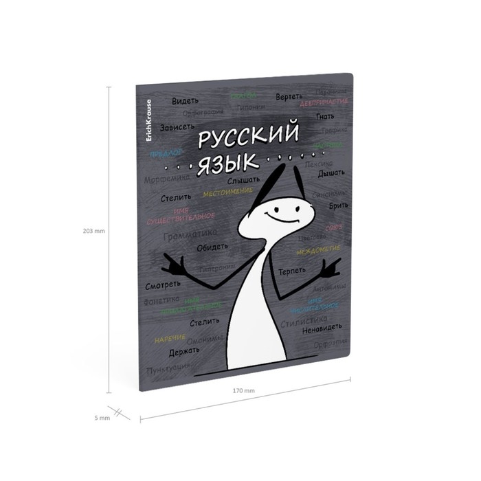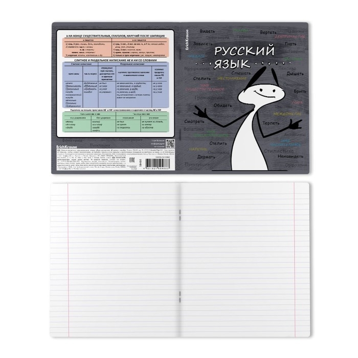 Тетрадь предметная РУССКИЙ ЯЗЫК, 48 листов в линейку, ErichKrause "Чубрик", пластиковая обложка, шелкография, блок офсет 100% белизна, инфо-блок
