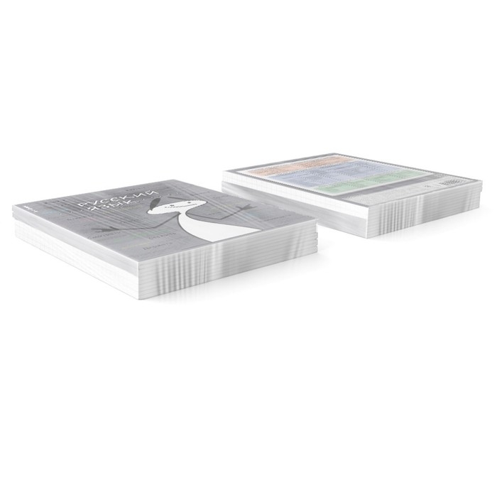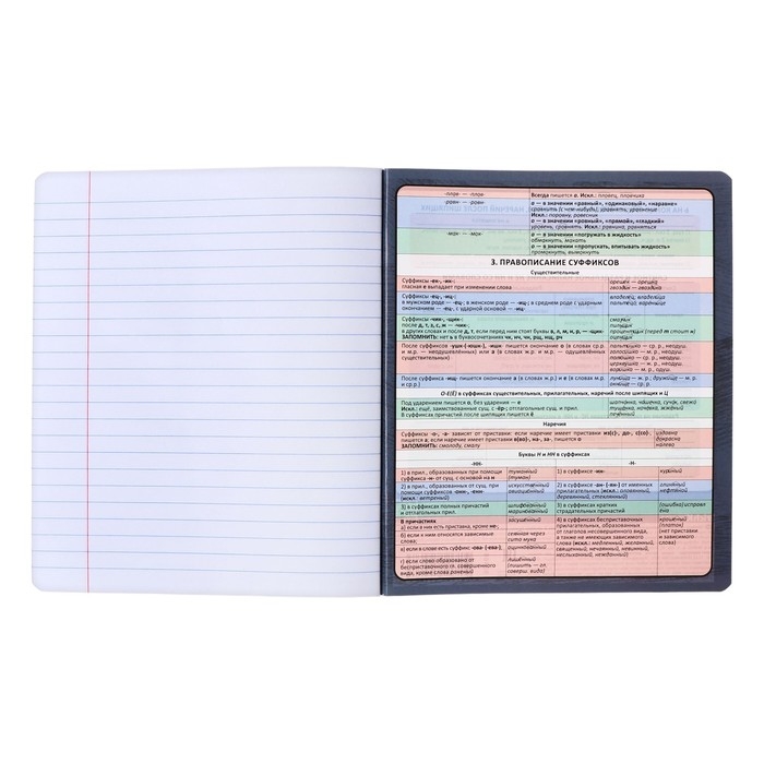 Тетрадь предметная формата А5+ (170x203 мм). Двойная обложка: внешняя выполнена из высококачественного износостойкого прозрачного пластика с фактурой «песок», внутренняя — из качественной мелованной бумаги. В блоке 48 листов в линейку с полями. Бумага офсетная плотностью 60 г/м2. Белизна бумаги - 100%. Цвет линовки - синий. Скругленные уголки обложки и блока. Тип скрепления - скоба. Имеет инфо-блок с кратким изложением школьной программы. Тетради упакованы в термоусадочную плёнку по 5 штук.
