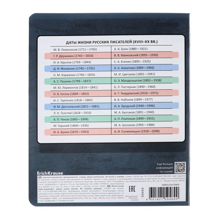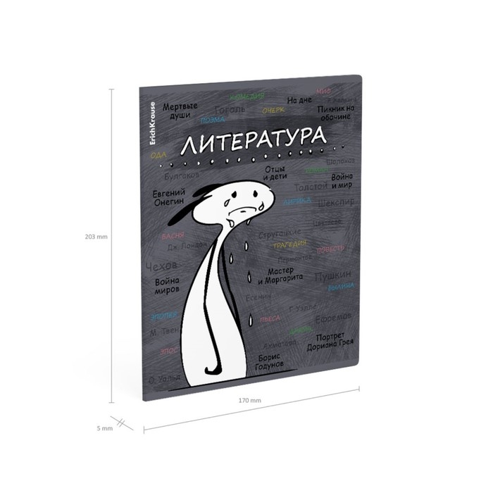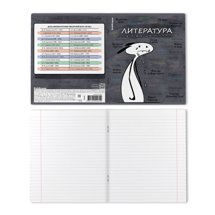 Тетрадь предметная ЛИТЕРАТУРА, 48 листов в линейку, ErichKrause "Чубрик", пластиковая обложка, шелкография, блок офсет 100% белизна, инфо-блок