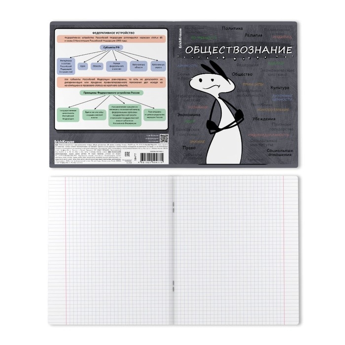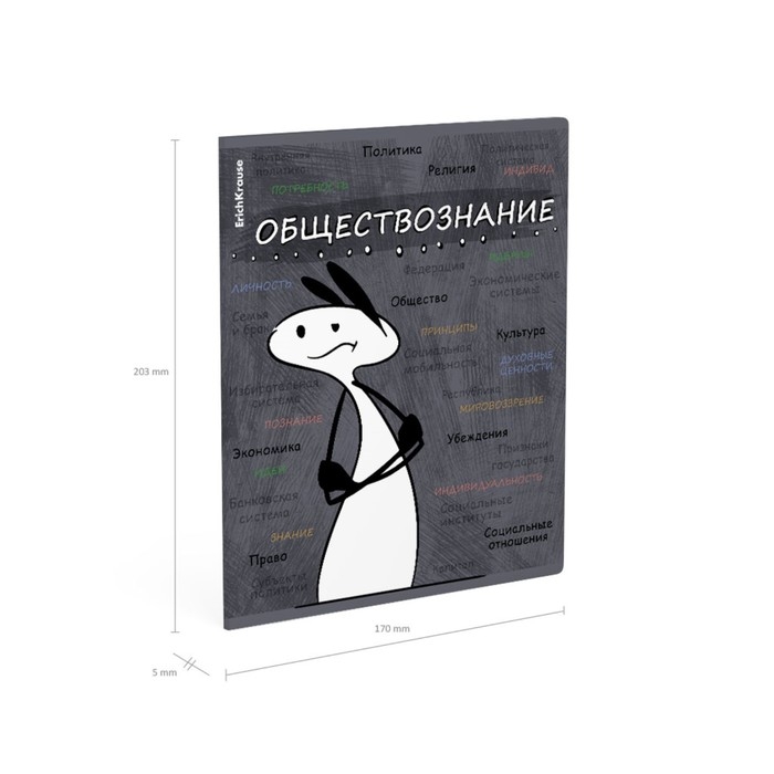 Тетрадь предметная ОБЩЕСТВОЗНАНИЕ, 48 листов в клетку, ErichKrause "Чубрик", пластиковая обложка, шелкография, блок офсет 100% белизна, инфо-блок