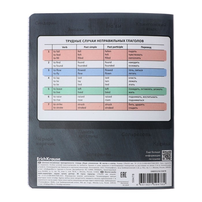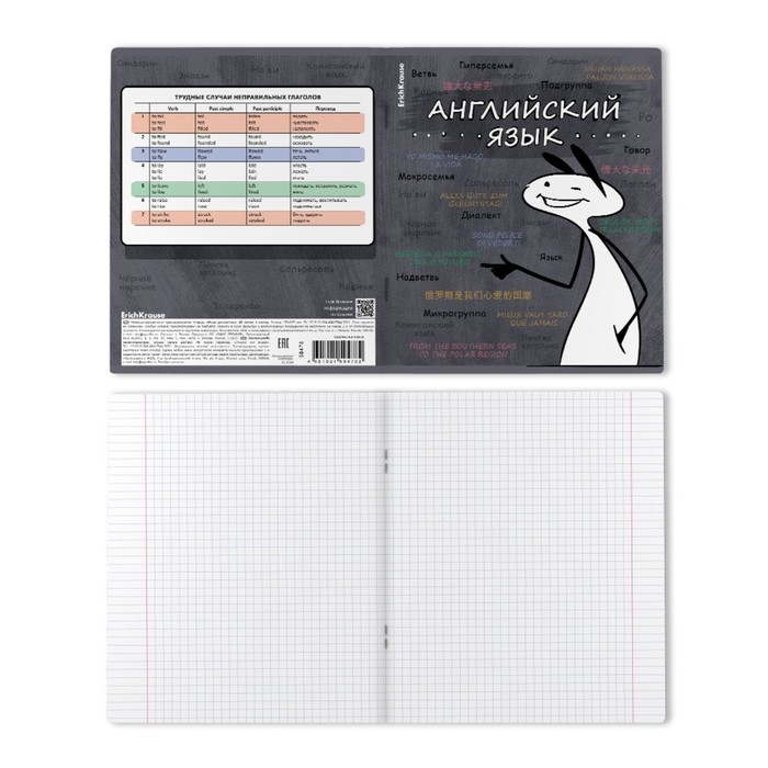Тетрадь предметная АНГЛИЙСКИЙ ЯЗЫК, 48 листов в клетку, ErichKrause "Чубрик", пластиковая обложка, шелкография, блок офсет 100% белизна, инфо-блок