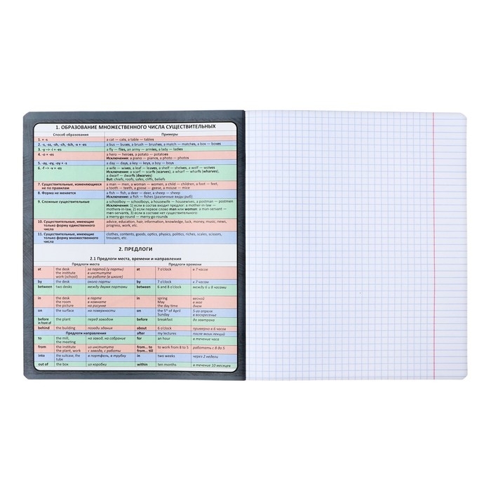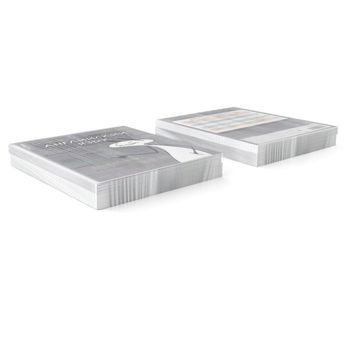 Тетрадь предметная формата А5+ (170x203 мм). Двойная обложка: внешняя выполнена из высококачественного износостойкого прозрачного пластика с фактурой «песок», внутренняя — из качественной мелованной бумаги. В блоке 48 листов в клетку с полями. Бумага офсетная плотностью 60 г/м2. Белизна бумаги - 100%. Цвет линовки - синий. Скругленные уголки обложки и блока. Тип скрепления - скоба. Имеет инфо-блок с кратким изложением школьной программы. Тетради упакованы в термоусадочную плёнку по 5 штук.