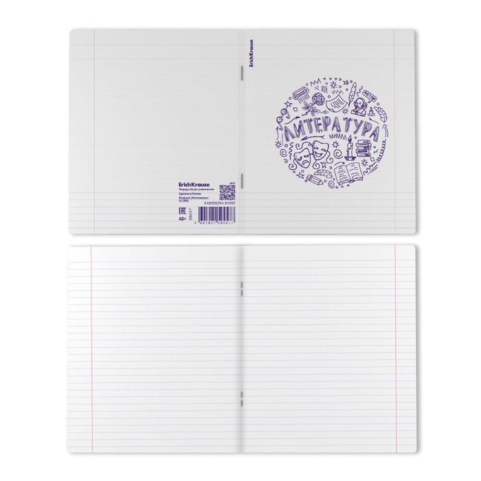 Тетрадь предметная ЛИТЕРАТУРА, 48 листов в линейку, ErichKrause Chaos, пластиковая обложка, шелкография, блок офсет 100% белизна, инфо-блок