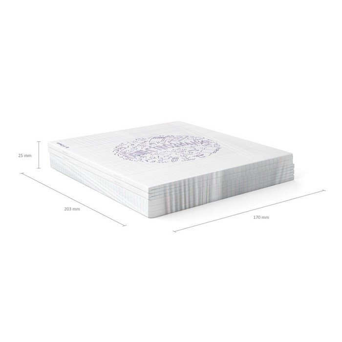 Тетрадь предметная формата А5+ (170x203 мм). Обложка выполнена из высококачественного износостойкого прозрачного пластика с фактурой «песок». В блоке 48 листов в клетку с полями. Бумага офсетная плотностью 60 г/м2. Белизна бумаги - 100%. Цвет линовки - синий. Скругленные уголки обложки и блока. Тип скрепления - скоба. Тетради упакованы в термоусадочную плёнку по 5 штук.