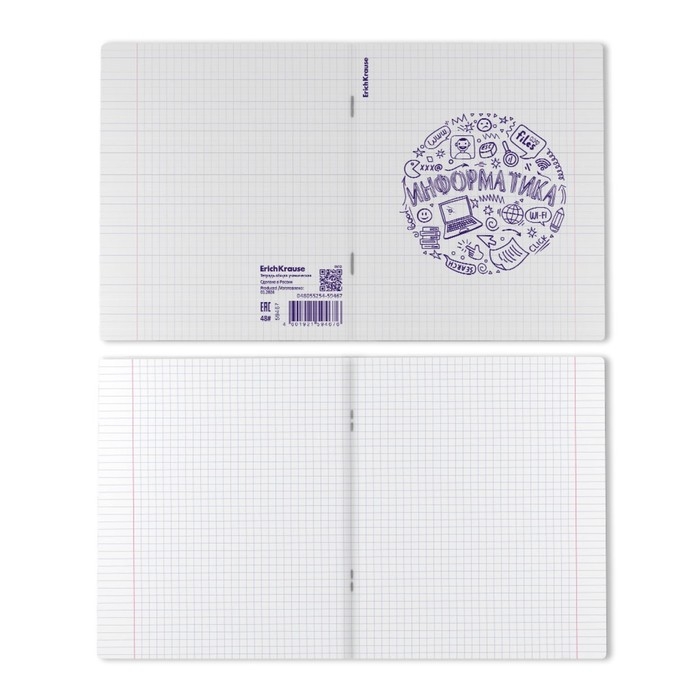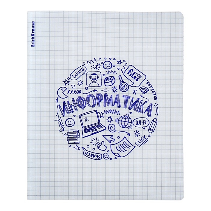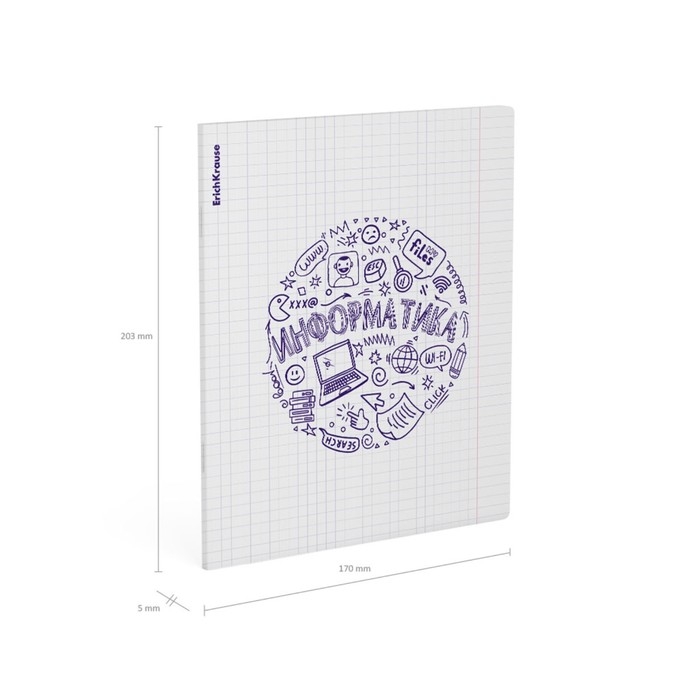 Тетрадь предметная ИНФОРМАТИКА, 48 листов в клетку, ErichKrause Chaos, пластиковая обложка, шелкография, блок офсет 100% белизна, инфо-блок