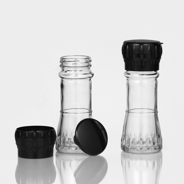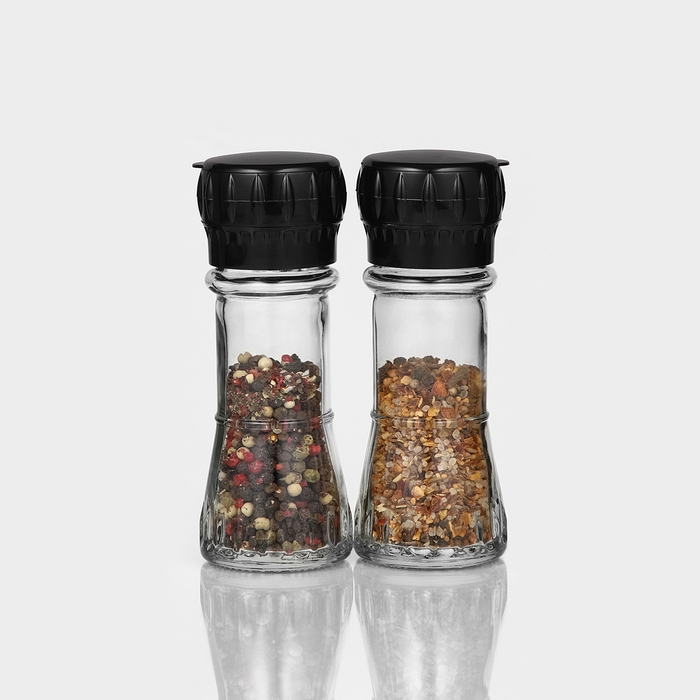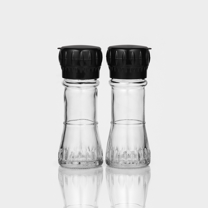 Набор стеклянных мельниц, 80 мл, 2 шт, цвет чёрный