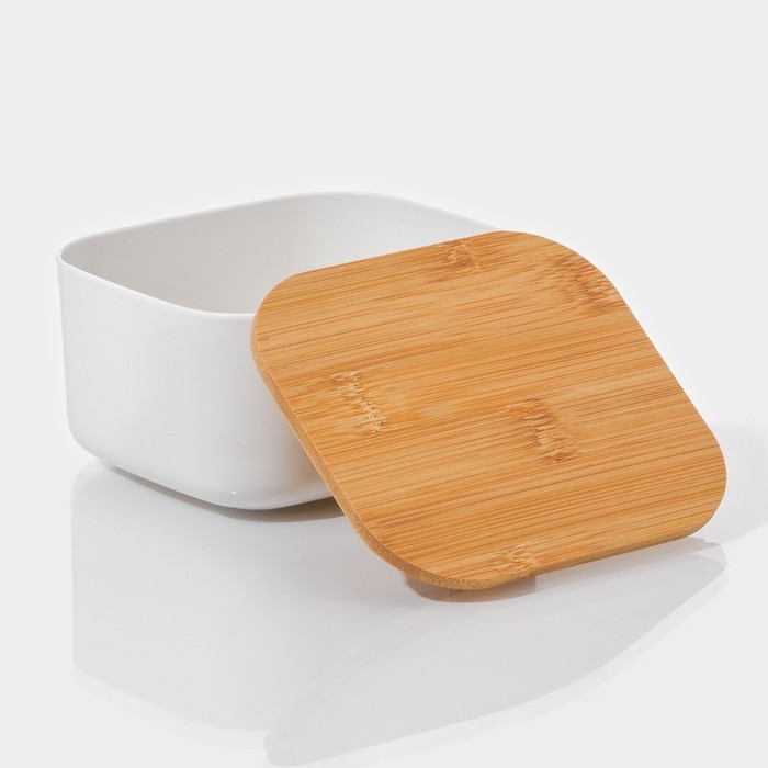Контейнер оснащен плотной крышкой, которая надежно защищает содержимое от попадания пыли, влаги и грязи. Кроме того, крышка из бамбука придает контейнеру стильный и современный вид.