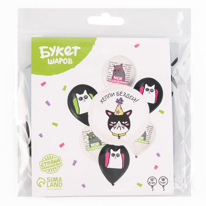 Набор воздушных шаров «Мои поздравления. Коты», латекс, фольга, 7 шт., МИКС