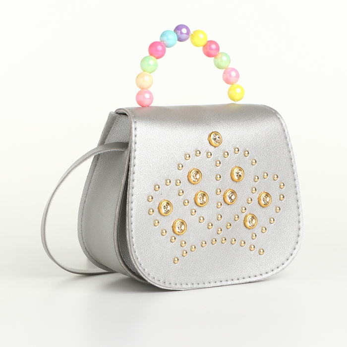 Сумка детская для девочки на клапане «Выбражулька», цвет серебряный