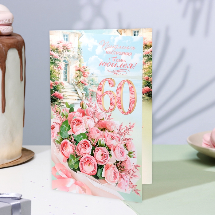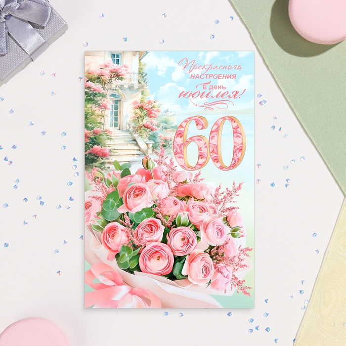 Открытка "Прекрасного настроения в день Юбилея! 60" цветы, А4