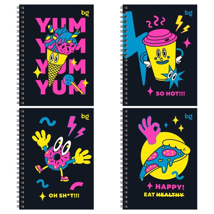 Записная книжка А6, 80 листов в клетку на гребене "Неоновый восторг", твердая обложка, матовая ламинация, выборочный лак, МИКС